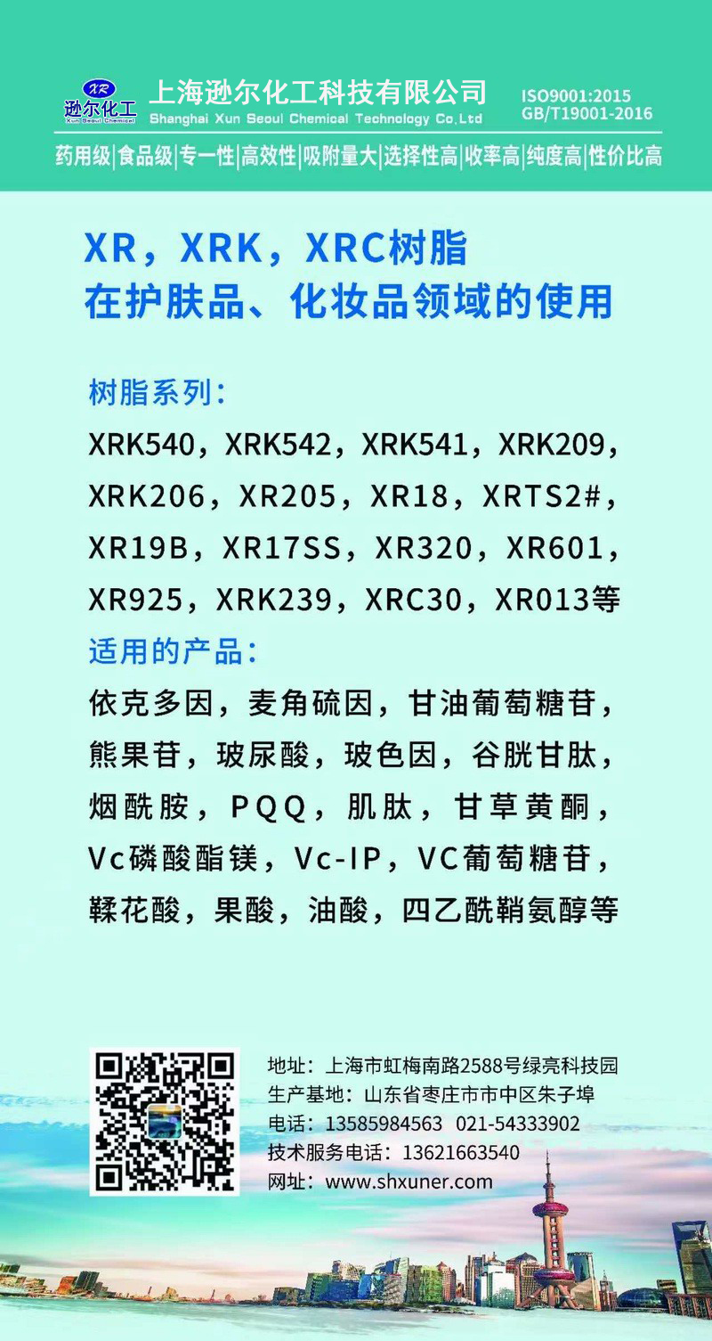 上海遜爾化工科技有限公司是上海市新型的高分子材料研發(fā)、生產(chǎn)、應(yīng)用相結(jié)合的高科技公司。公司具有完善的自主知識產(chǎn)權(quán)創(chuàng)新體系,與華東理工大學(xué),江南大學(xué),浙江工業(yè)大學(xué)等科研應(yīng)用平臺合作從事離子交換與吸附樹脂研制、生產(chǎn)和生物醫(yī)藥合成與分離工藝,三廢處理工藝開發(fā)設(shè)計(jì)工作。